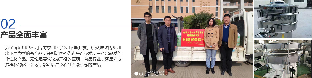 新鄉(xiāng)市萬眾機(jī)械設(shè)備有限公司是生產(chǎn)振動(dòng)機(jī)械、篩分設(shè)備和過濾設(shè)備的專業(yè)廠家之一,擁有生產(chǎn)設(shè)備、雄厚的技術(shù)力量、完善的檢測(cè)手段、嚴(yán)格的管理體系。是河南省的商標(biāo)之一,被河南省科學(xué)技術(shù)廳頒定為高新技術(shù)企業(yè),為新鄉(xiāng)市“守合同重信用企業(yè)“。質(zhì)量信得過產(chǎn)品、質(zhì)量服務(wù)消費(fèi)者滿意企業(yè)、合格產(chǎn)品等榮譽(yù)稱號(hào)。擁有自主進(jìn)出口經(jīng)營(yíng)權(quán),產(chǎn)品遍布各地,并遠(yuǎn)銷北美、西歐及東南亞等地區(qū)。